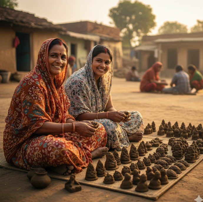 Our model is built around local ownership. SHGs and community members are at the centre of collection, processing and product manufacturing.From SHG-led composting units to dung-based product workshops, we focus on creating dignified green livelihoods while improving village cleanliness and health.